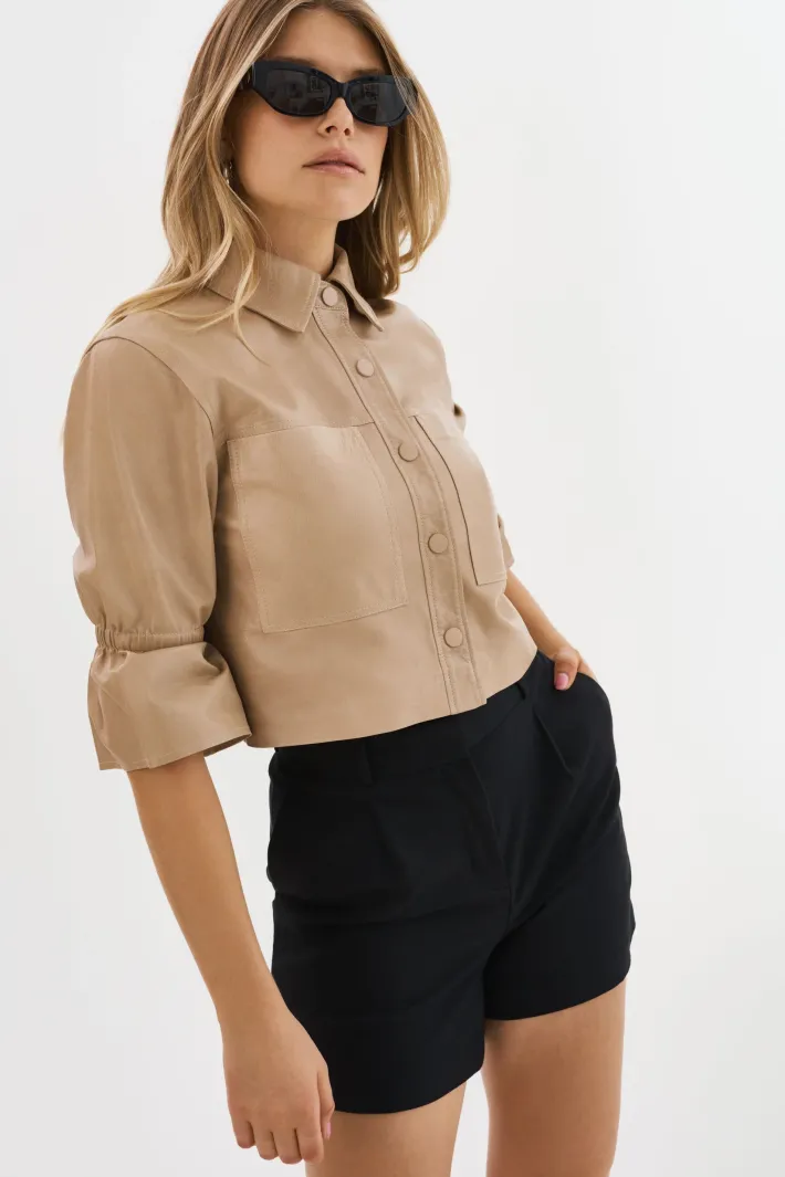 Lamaroque Carolina Ruffle Sleeve Jacket in Beige
