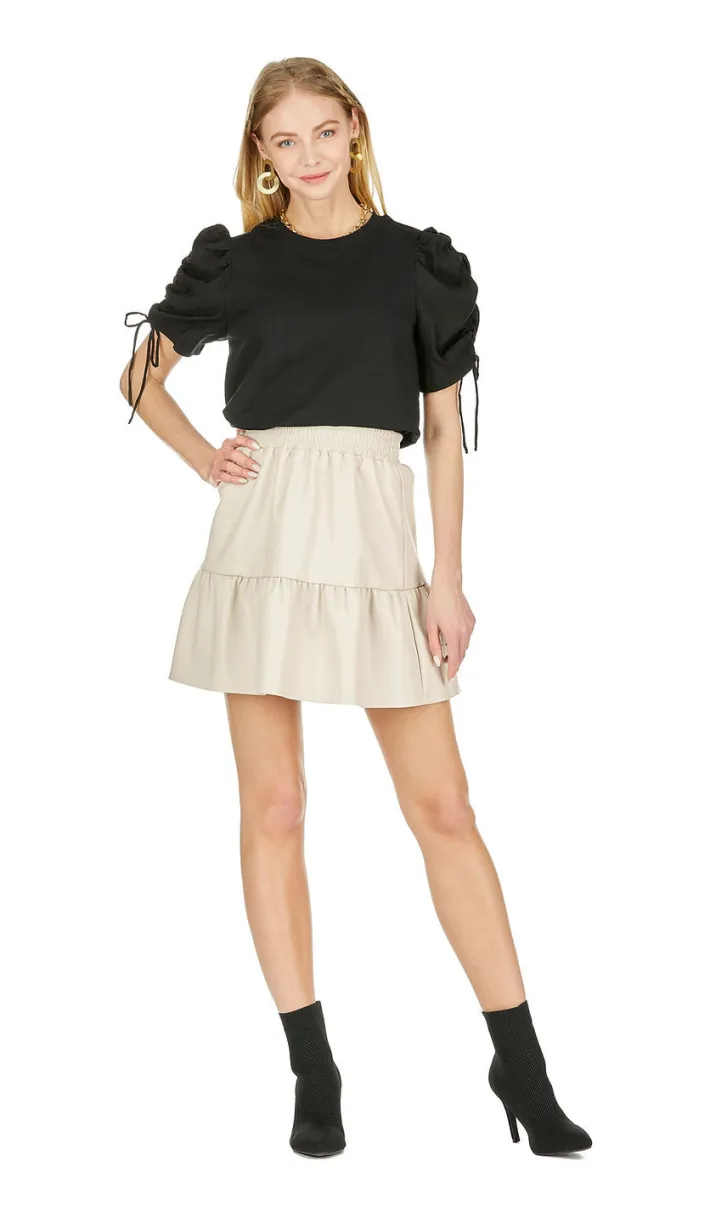 Joy Joy Faux Leather Ruffle Hem Skirt in Bone