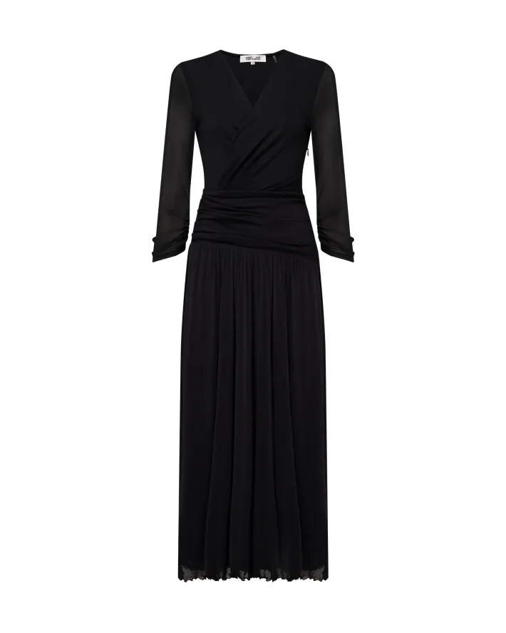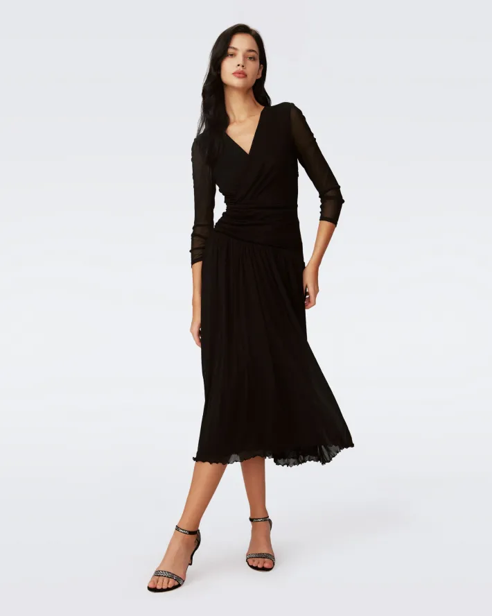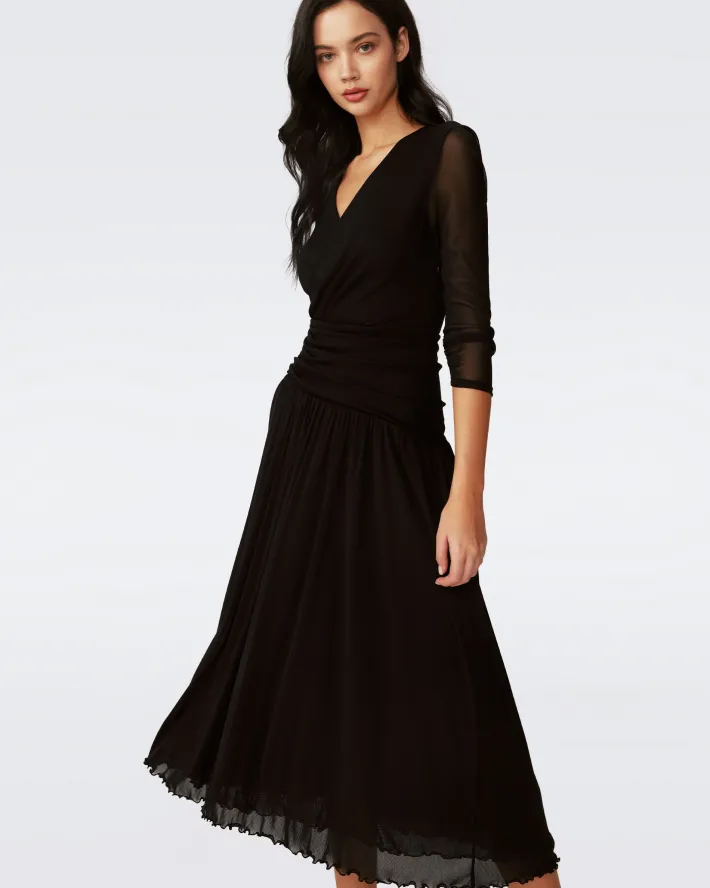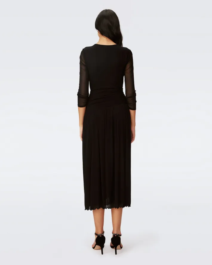 -Ponte Surplice Bodice with Mesh Sleeves and Skirt