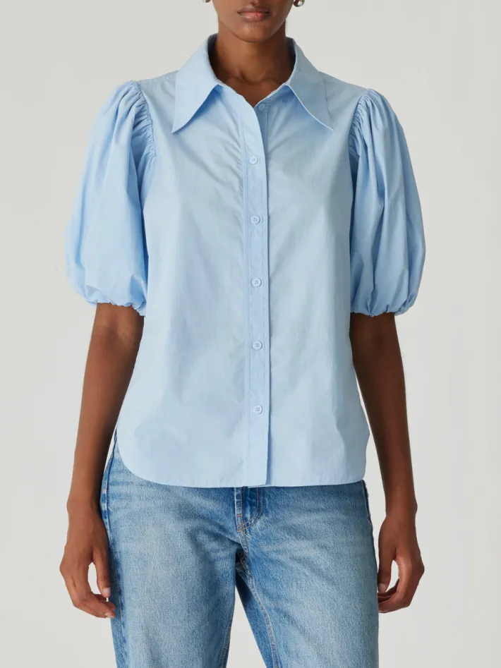 Rebecca Taylor Puff Sleeve Button Down Shirt in French Blue