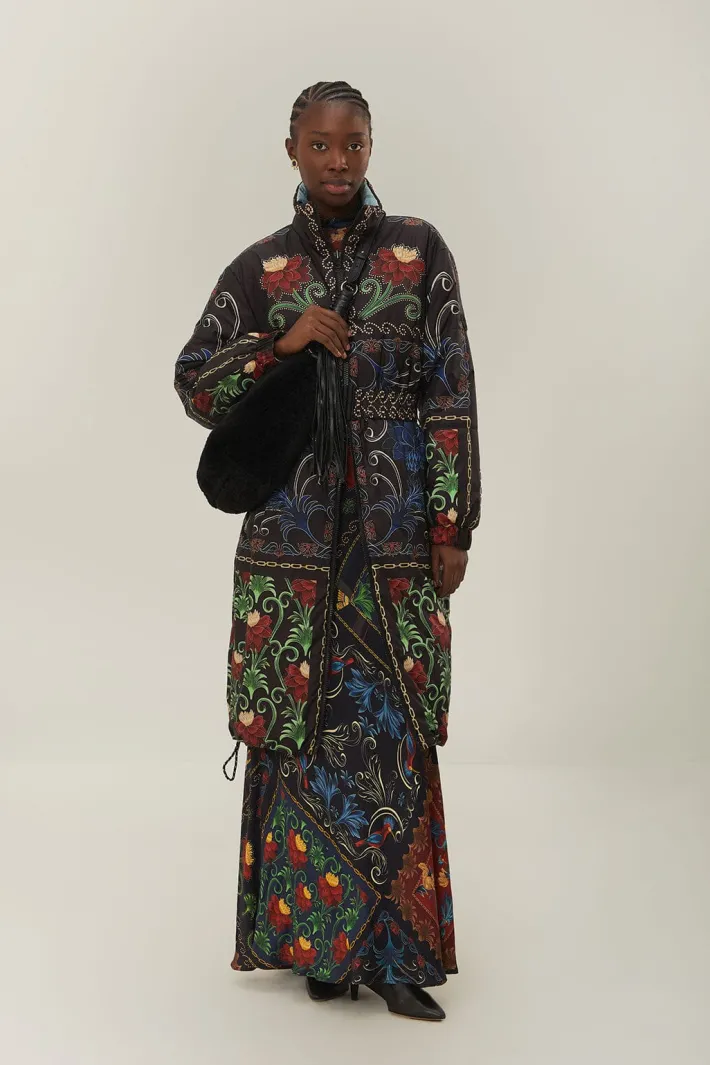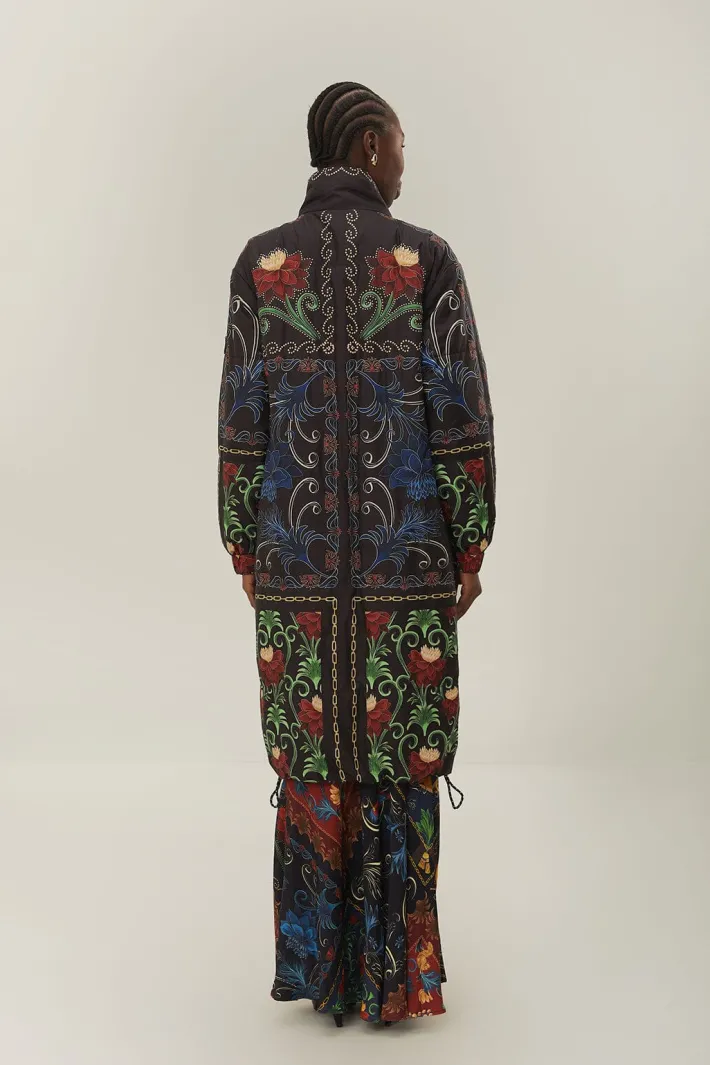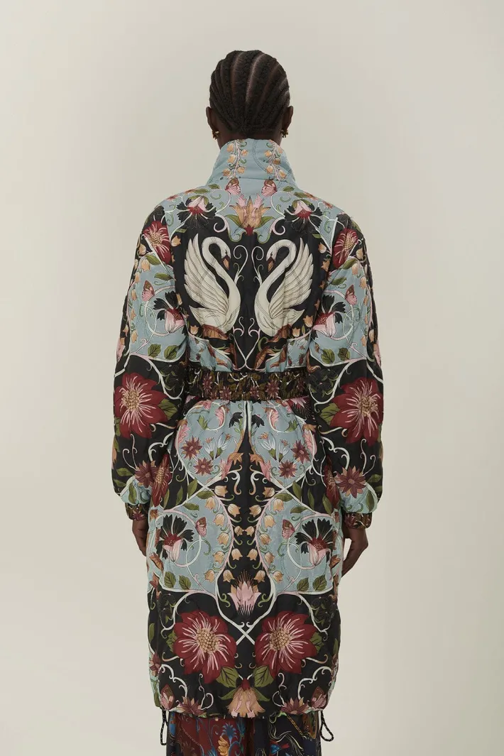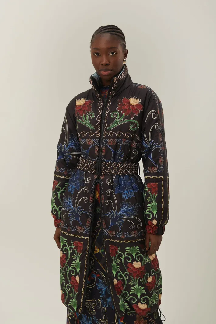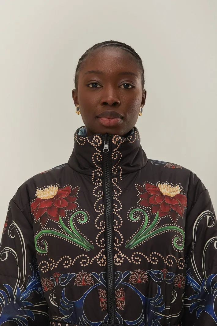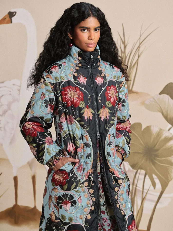 Farm Rio Reversible Flowing Beauty Puffer Jacket in Blue