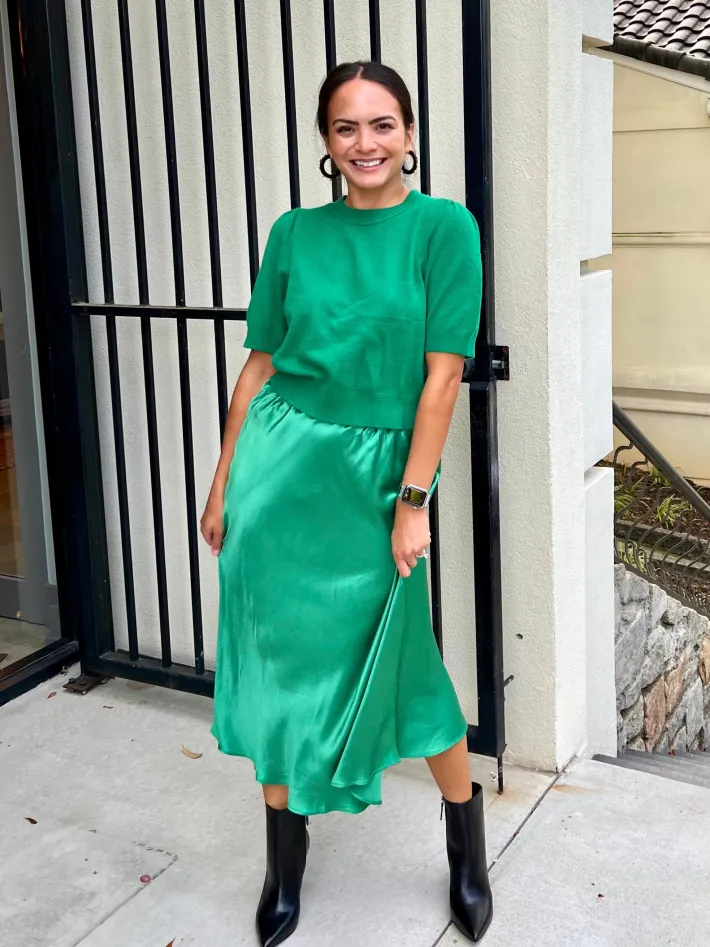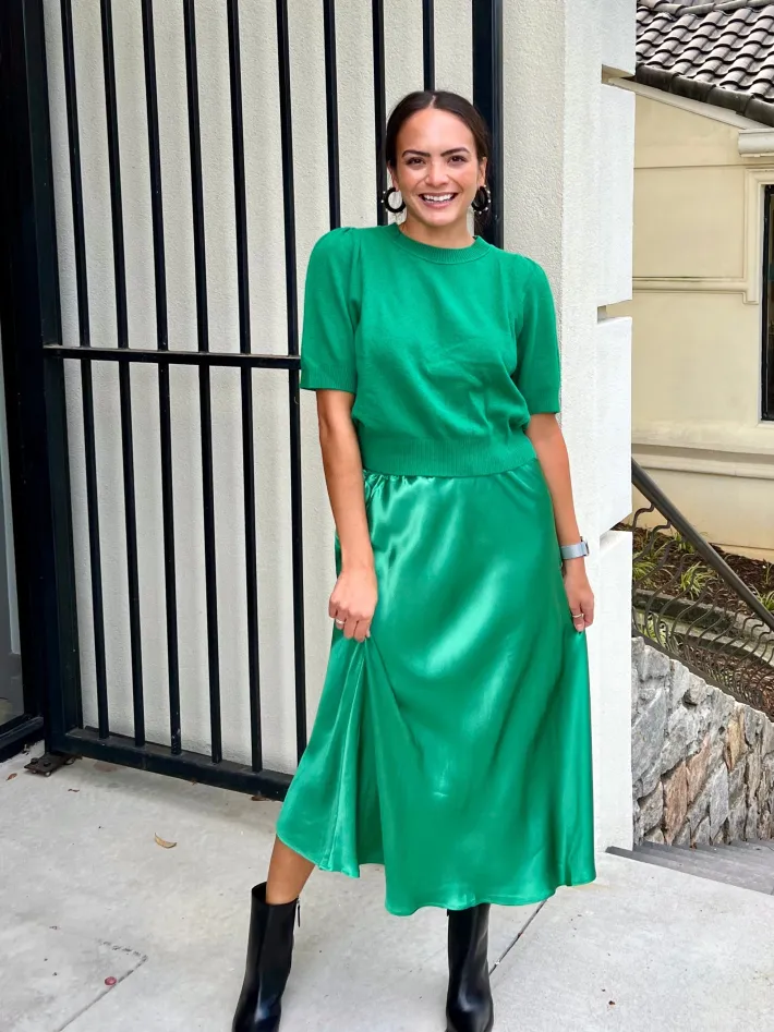 Rose & Crown Cashmere Puff Sleeve Sweater in Kelly Green