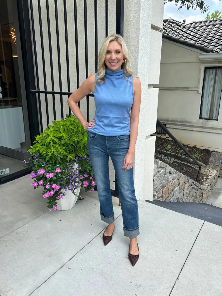 Kinross Cashmere Sleeveless Seamed Funnel Top in Como